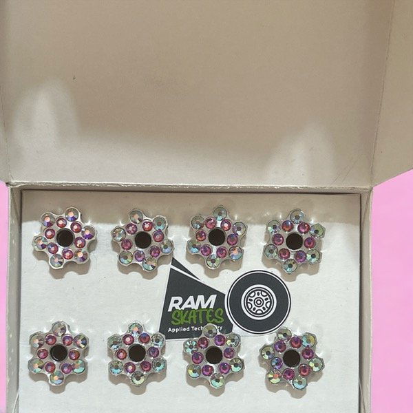 Tuercas con strass modelo Flor Ram Skates para ejes de 7 mm