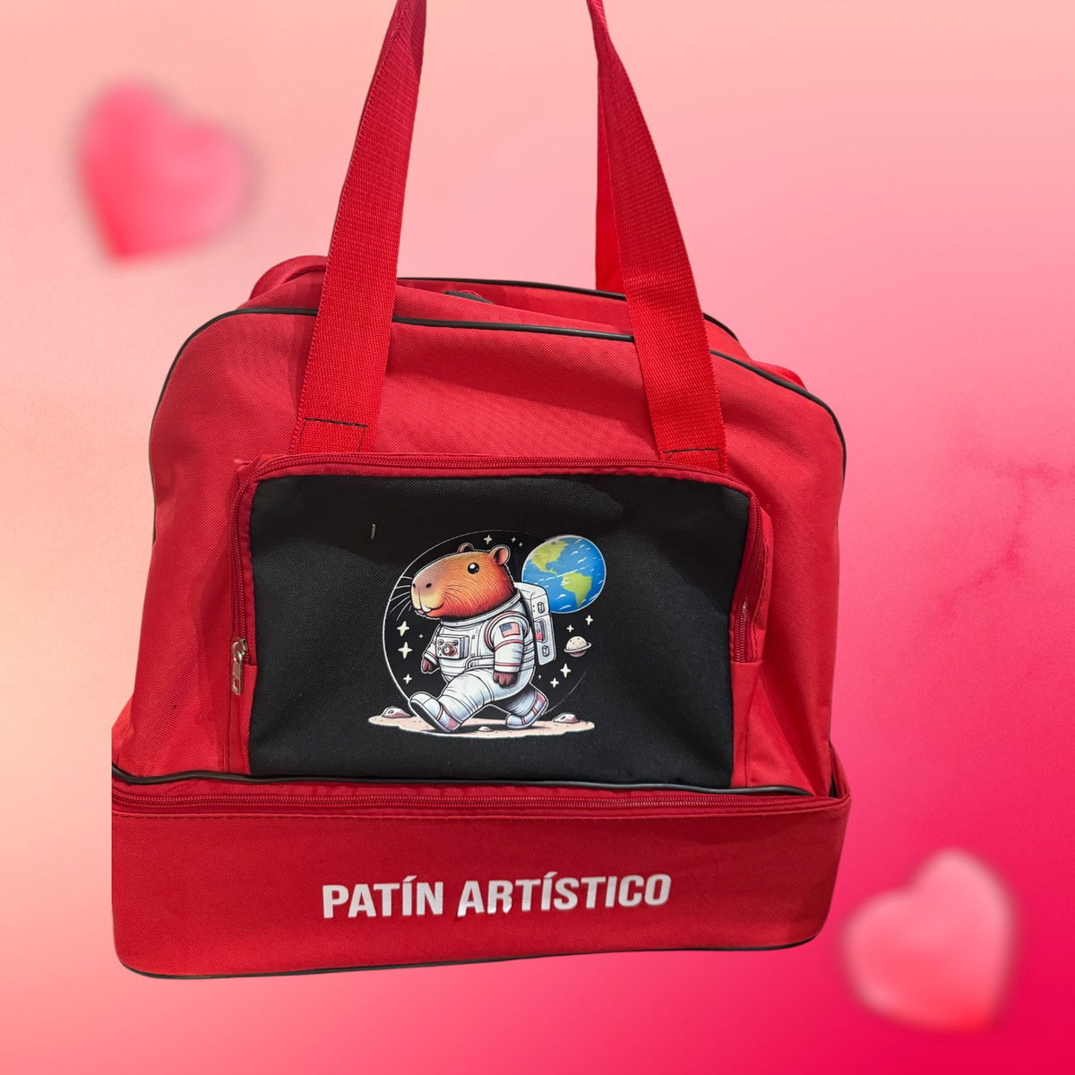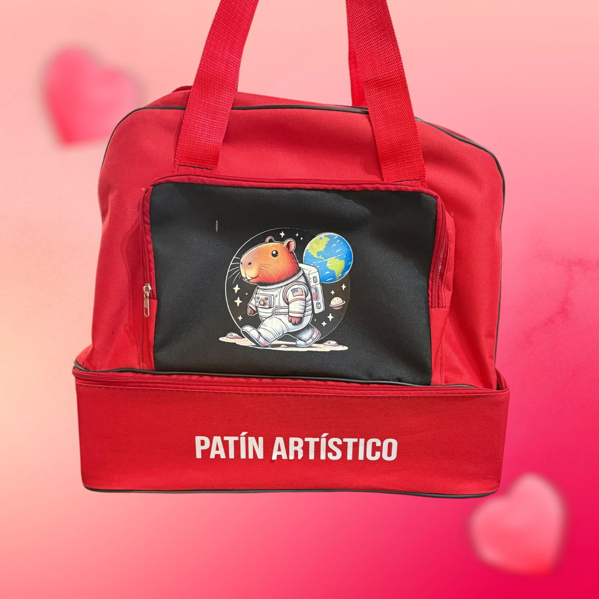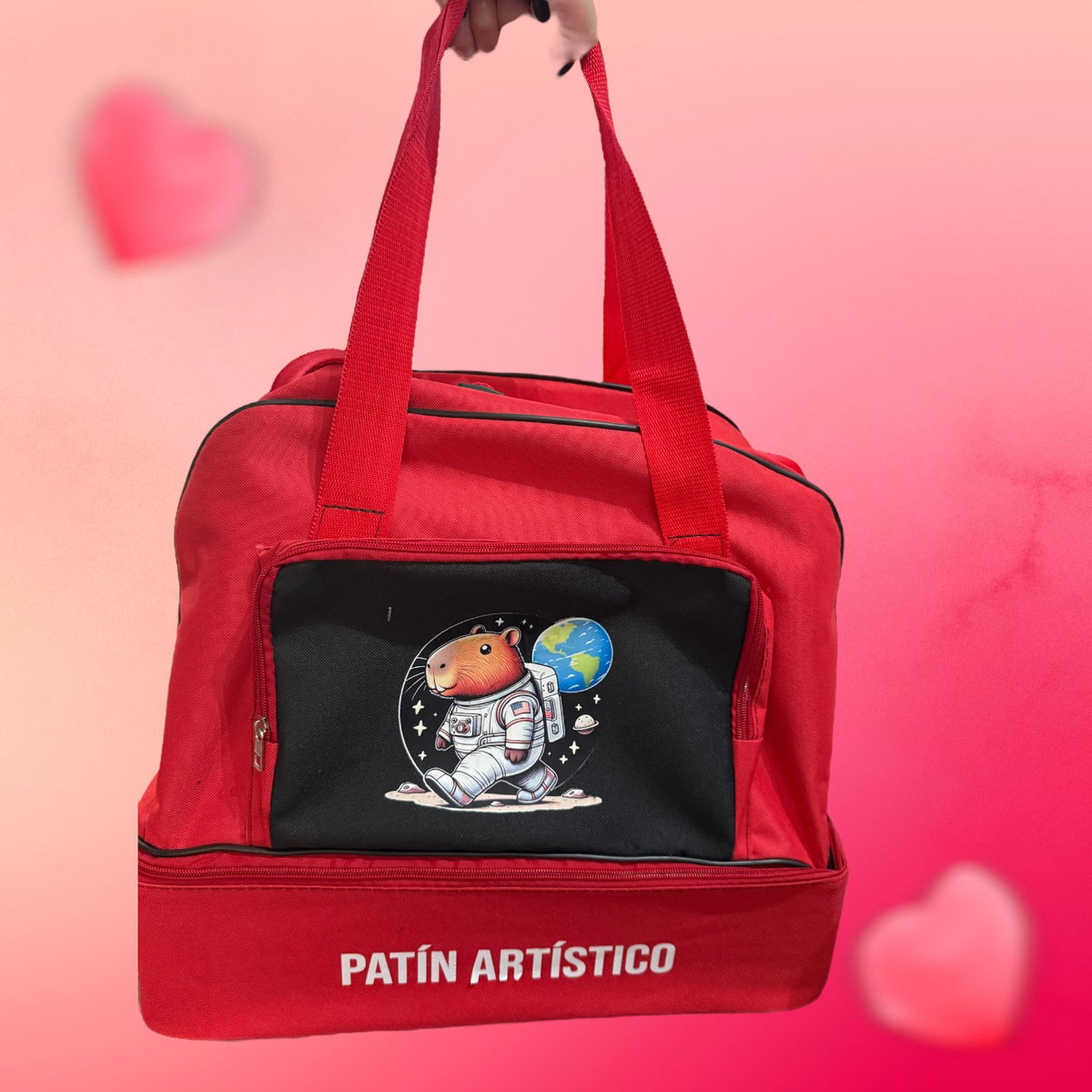 Bolsos Portapatines modelo cajón. Tira regulable para colgar de los hombros. Dos manijas para llevar en las manos.
