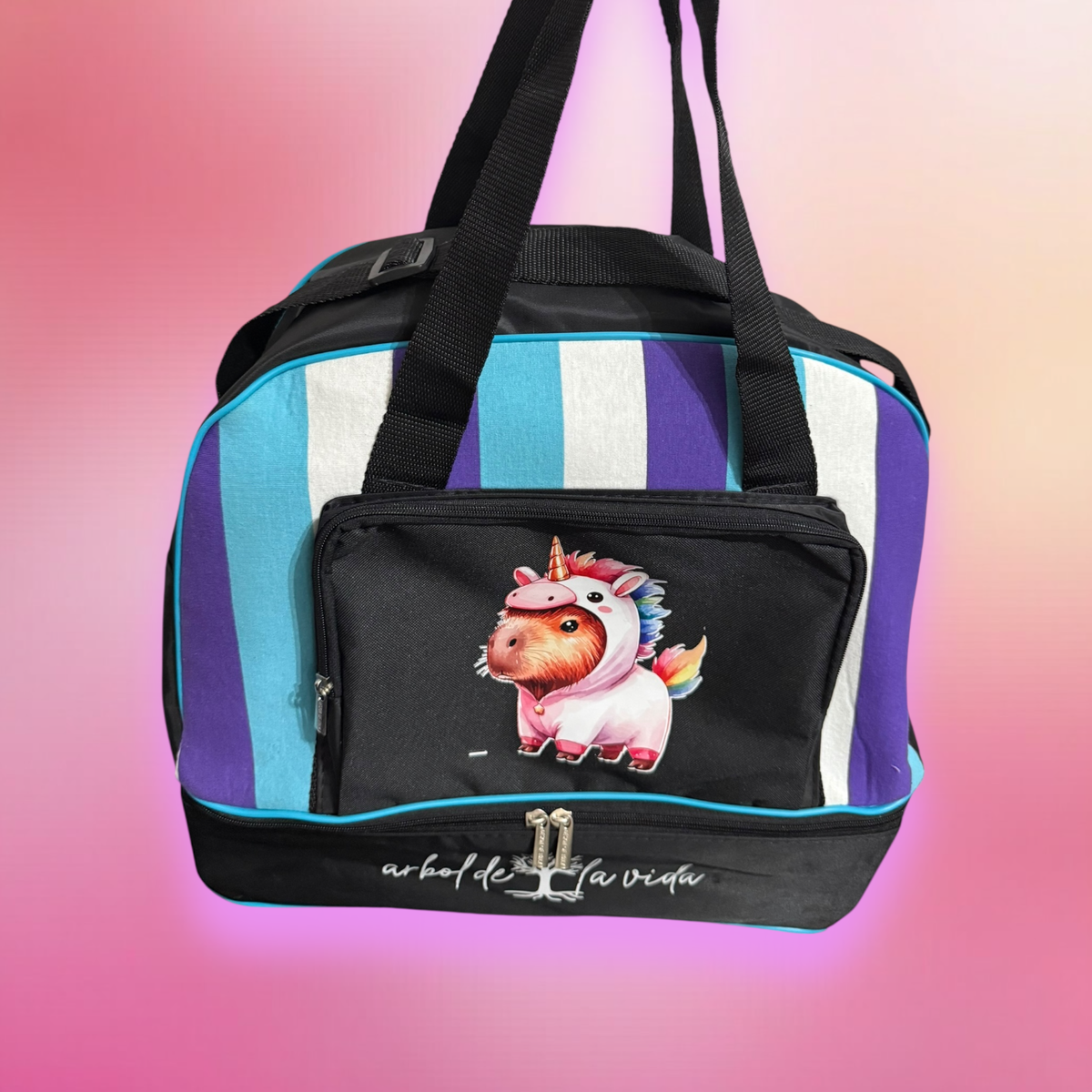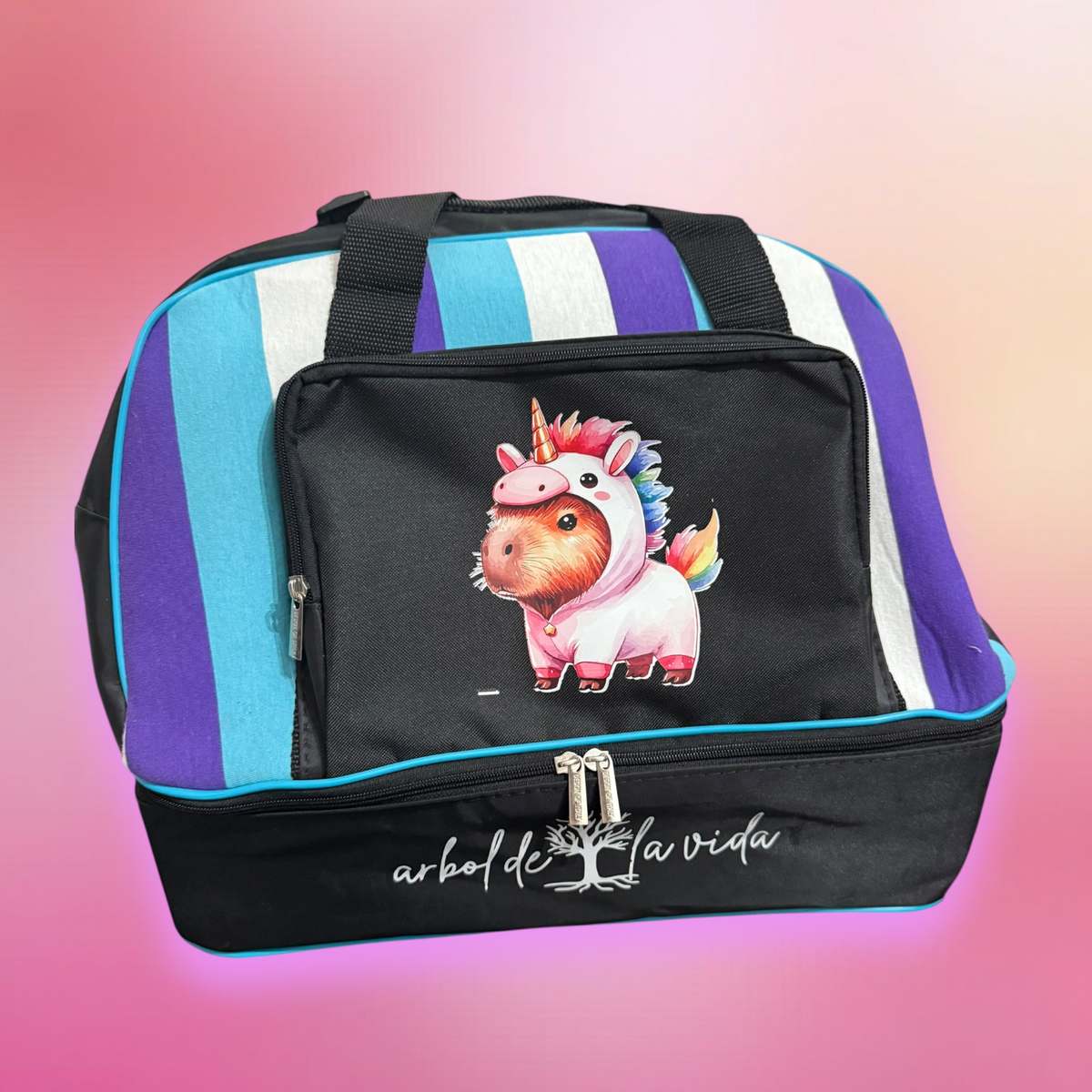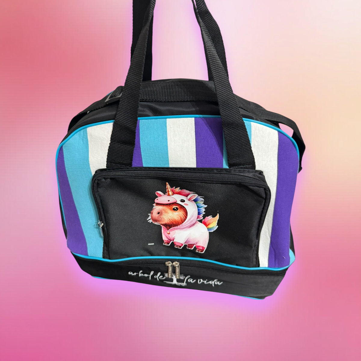 Bolsos Portapatines modelo cajón. Tira regulable para colgar de los hombros. Dos manijas para llevar en las manos.