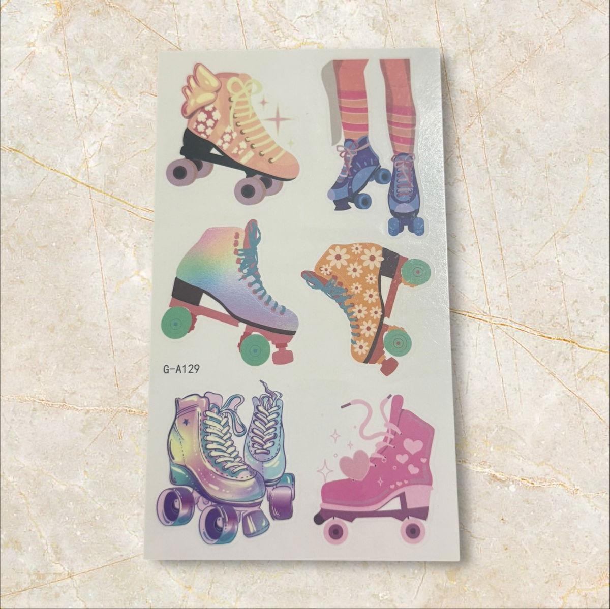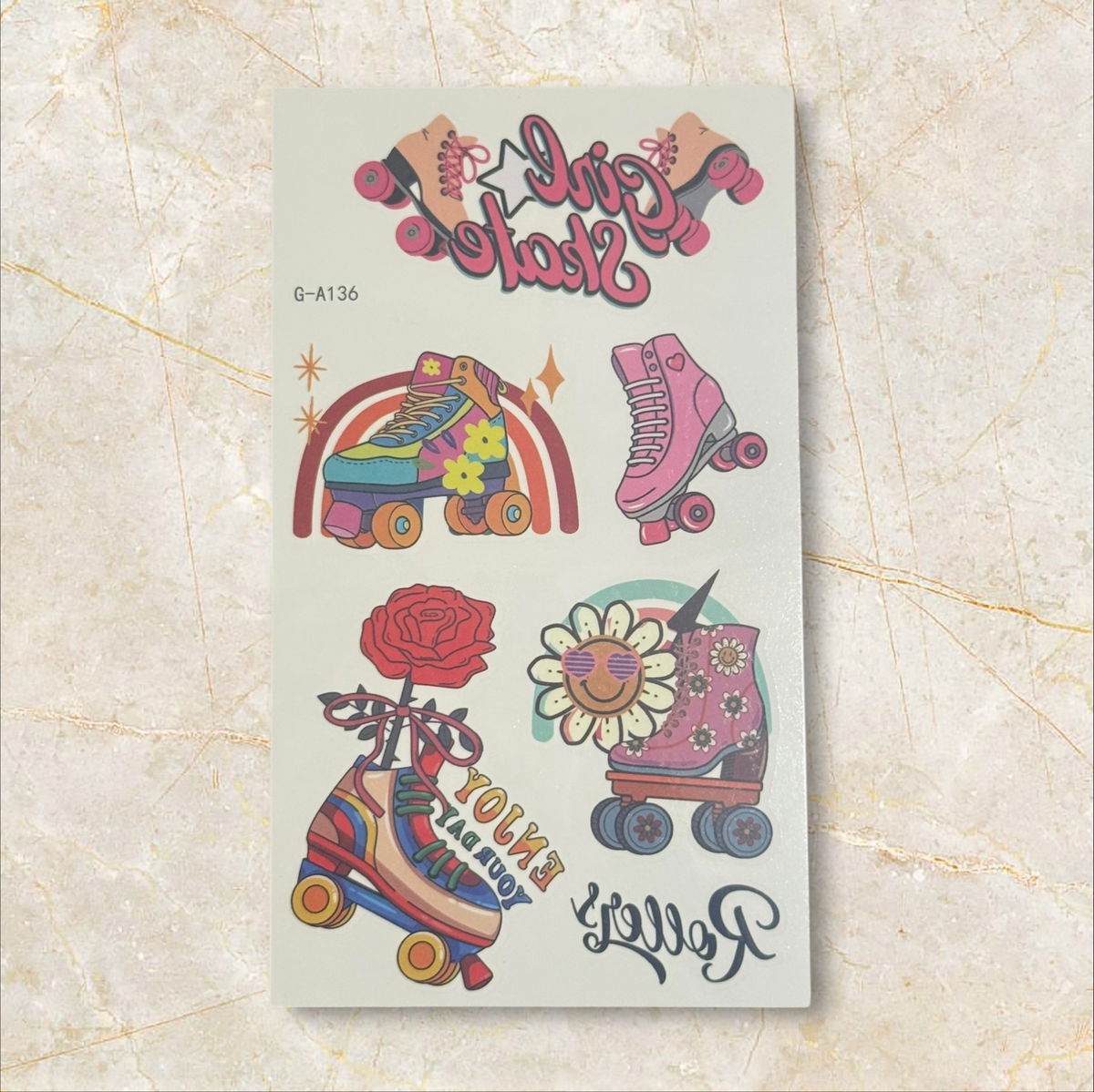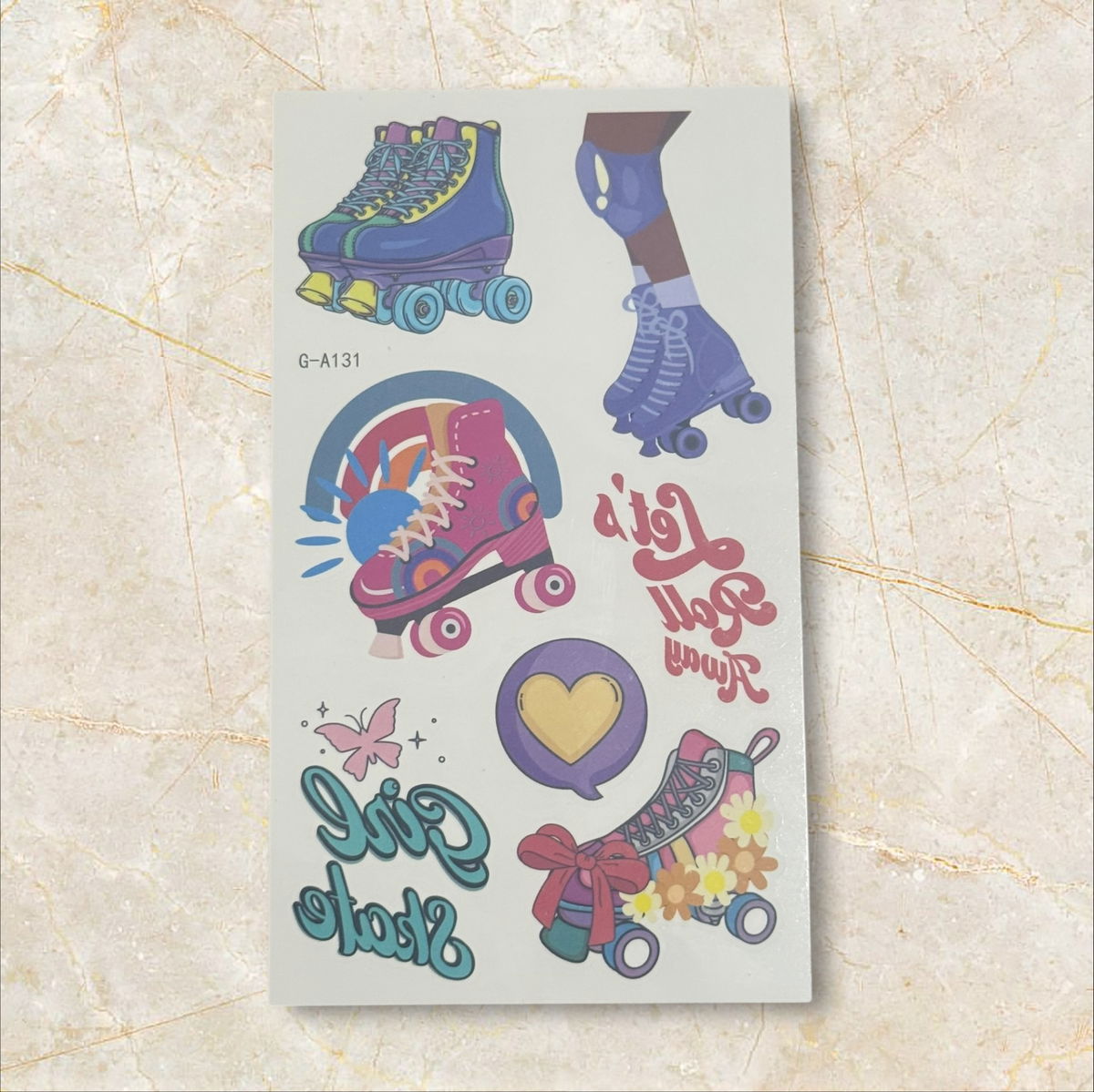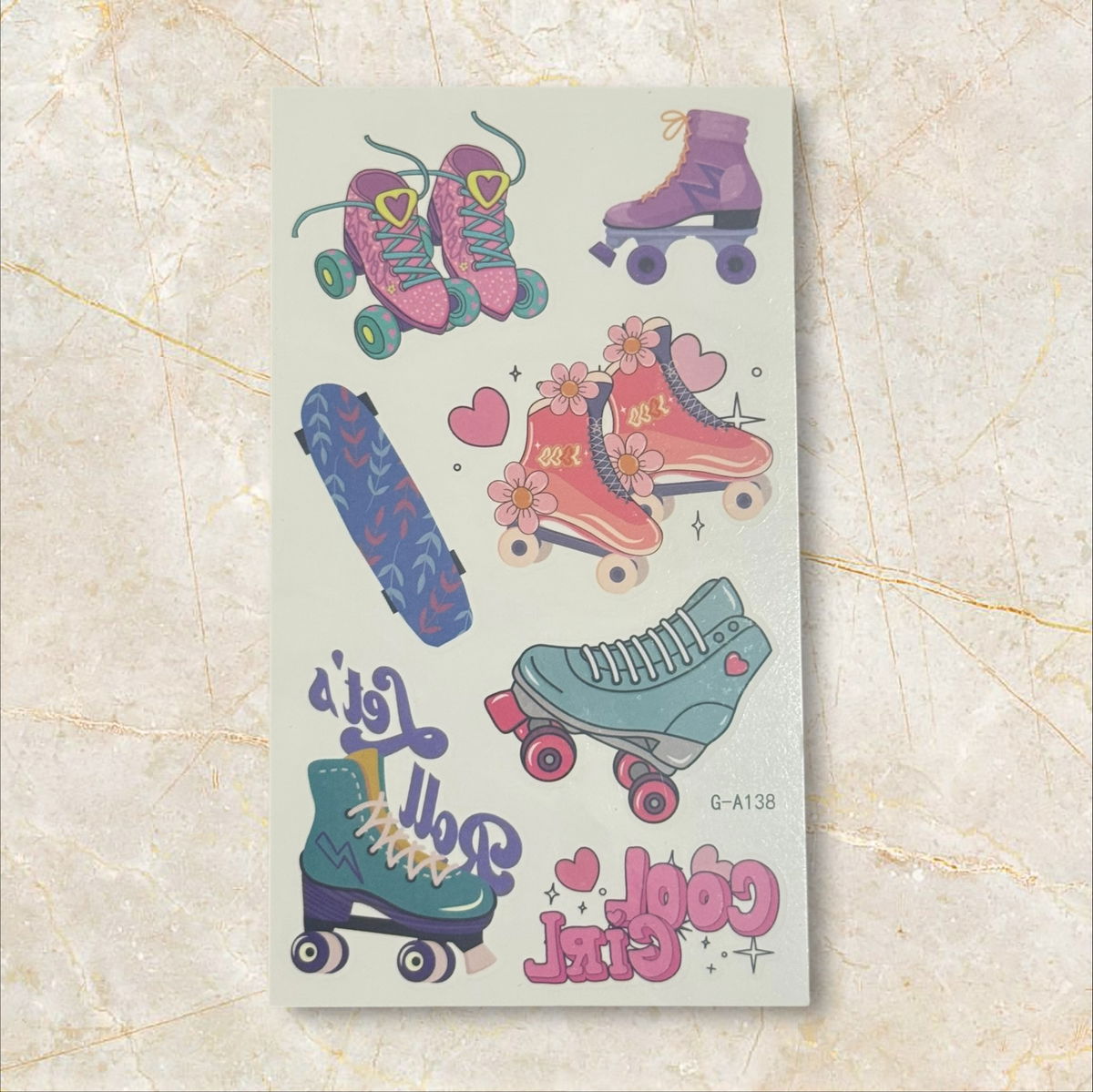 Dale un toque artístico y divertido a tu piel con nuestra plancha de tatuajes temporales de patinaje artístico. Diseños exclusivos inspirados en el mundo del patín: elegantes, coloridos y perfectos para deportistas, fans y quienes viven el patín todos los días.