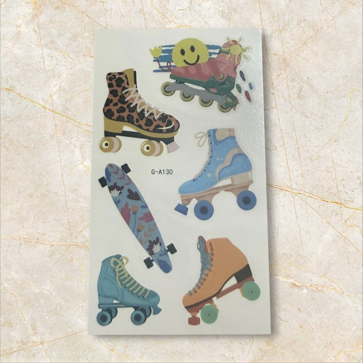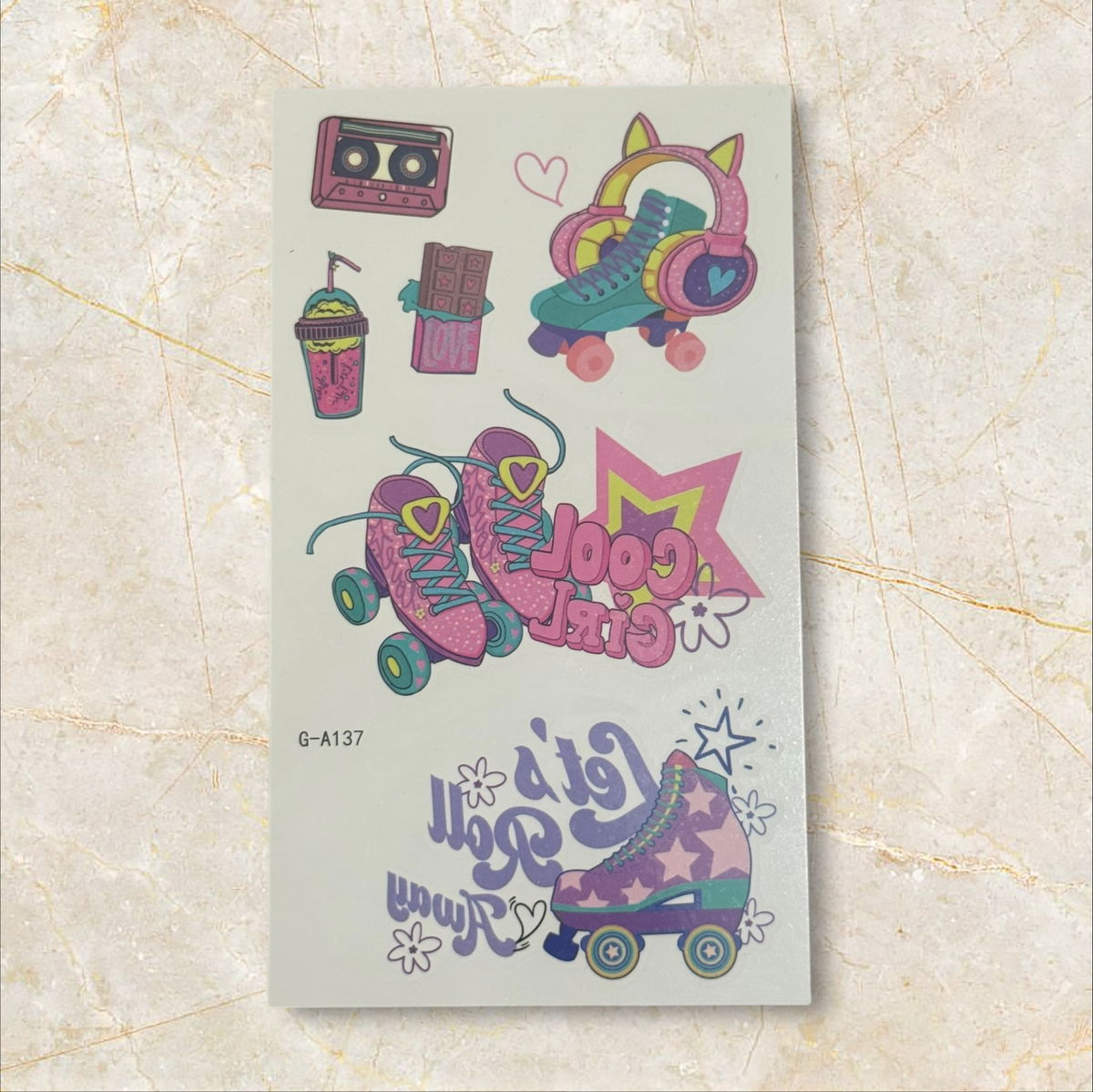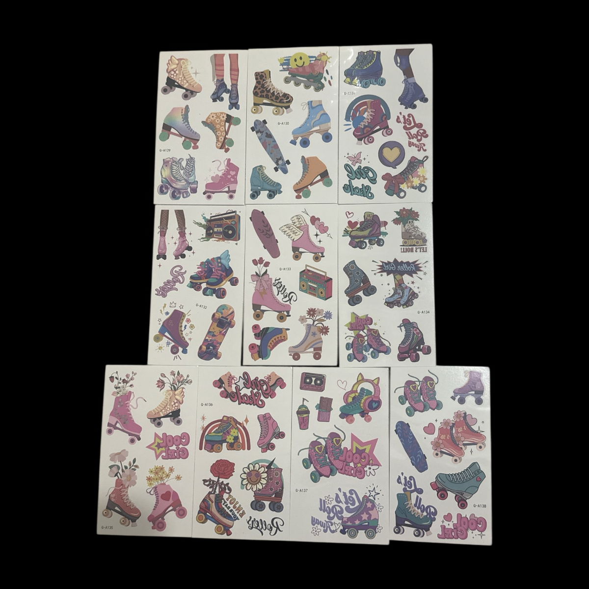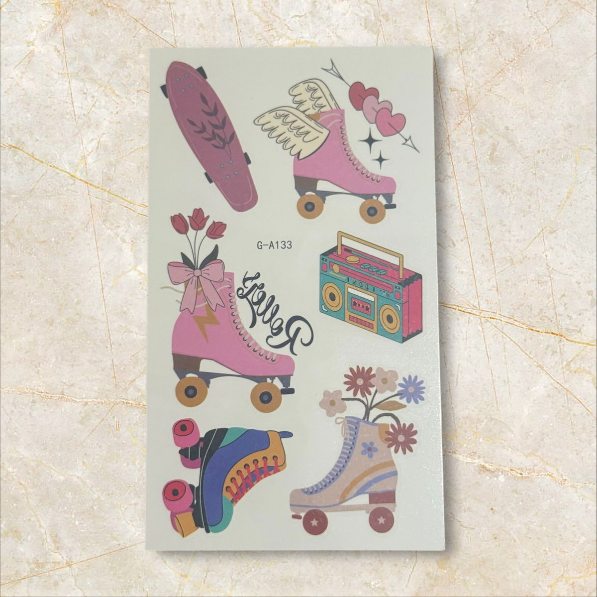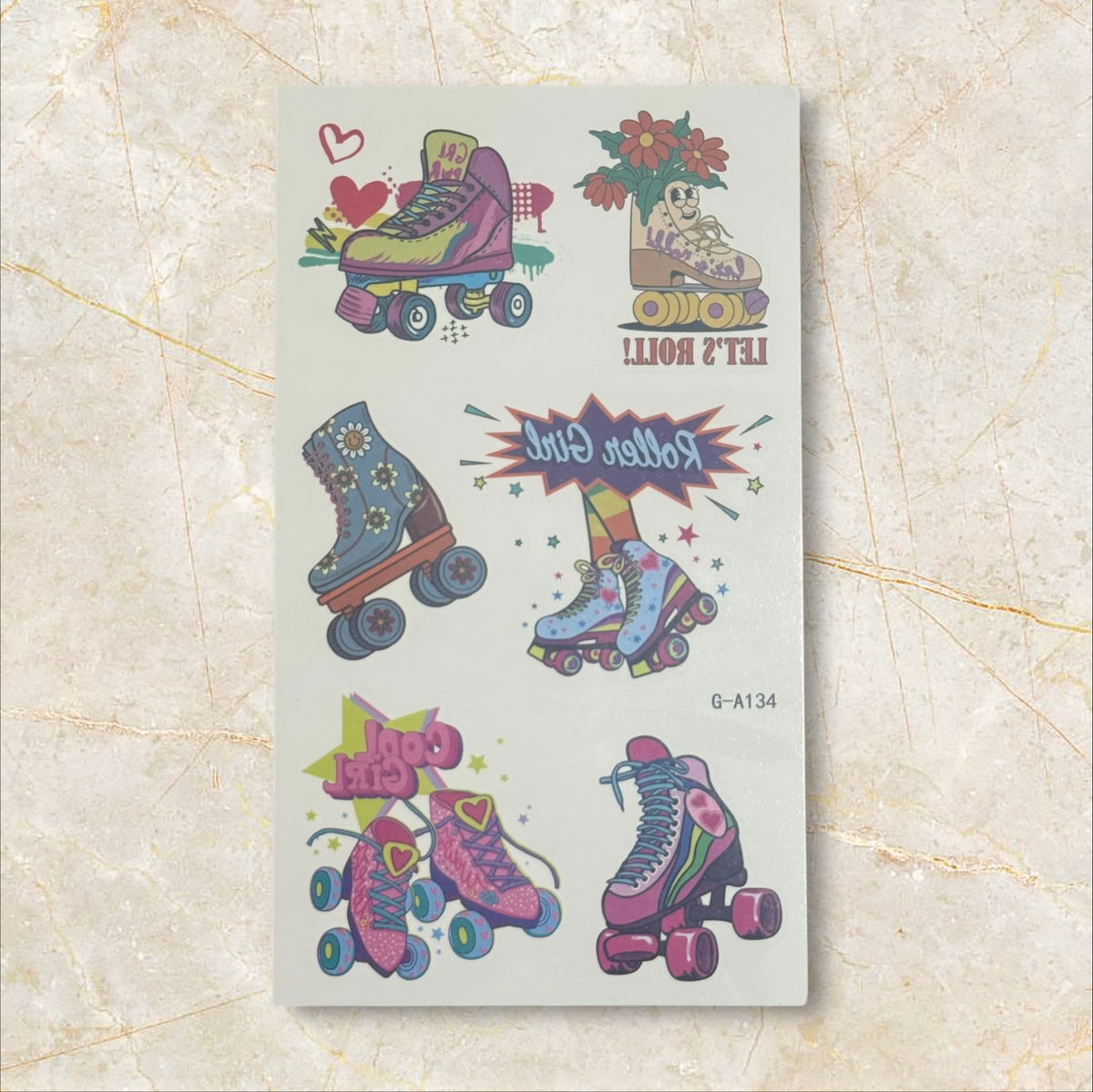 Dale un toque artístico y divertido a tu piel con nuestra plancha de tatuajes temporales de patinaje artístico. Diseños exclusivos inspirados en el mundo del patín: elegantes, coloridos y perfectos para deportistas, fans y quienes viven el patín todos los días.