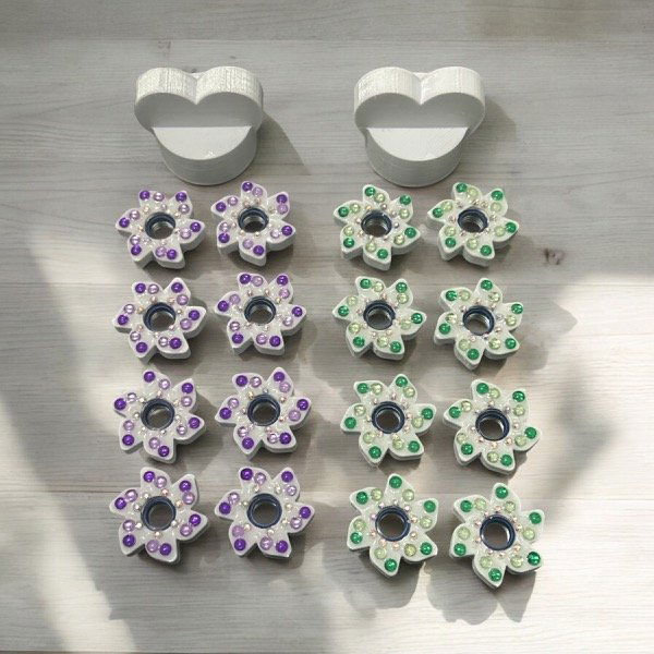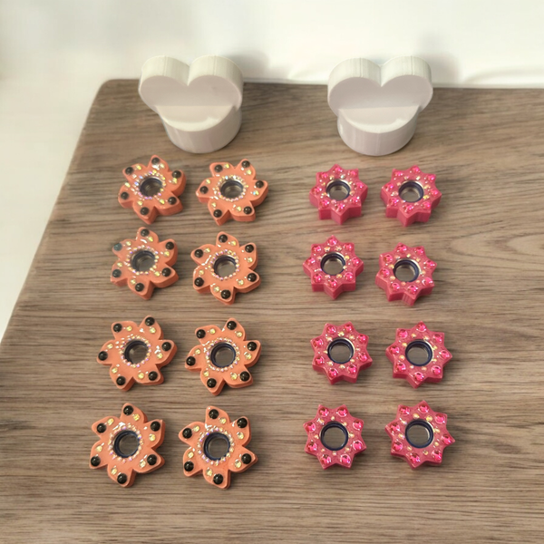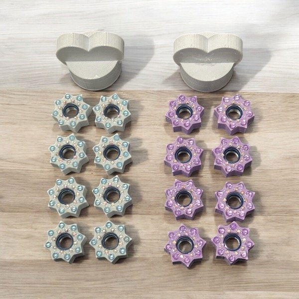 Tuercas con strass para planchas con eje de 8 mm. El pack incluye 9 tuercas y la llave correspondiente.