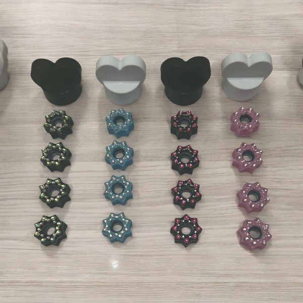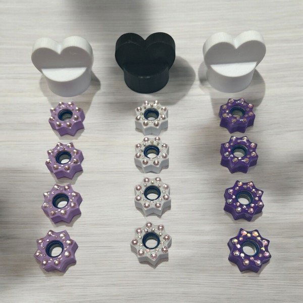 Tuercas con strass para planchas con eje de 8 mm. El pack incluye 9 tuercas y la llave correspondiente.