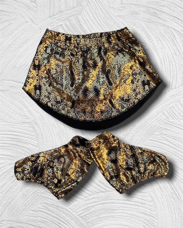 Conjunto Pollerin y cubrebotas Reptil dorado o plateado