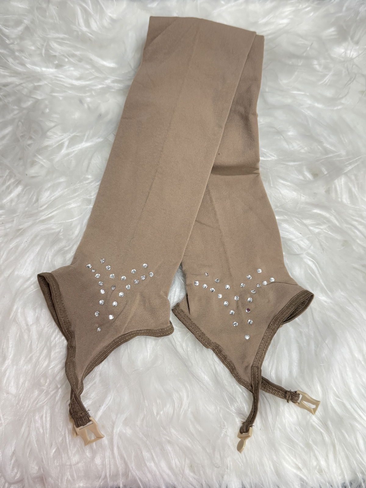 Medias con estribo y strass modelo Triángulo. No cubren la bota. Color piel. Marca Modellini. Leer bien la descripción de los talles que se indican a continuación. Por una cuestión de higiene, las mediasno tienen cambio ni devolución.