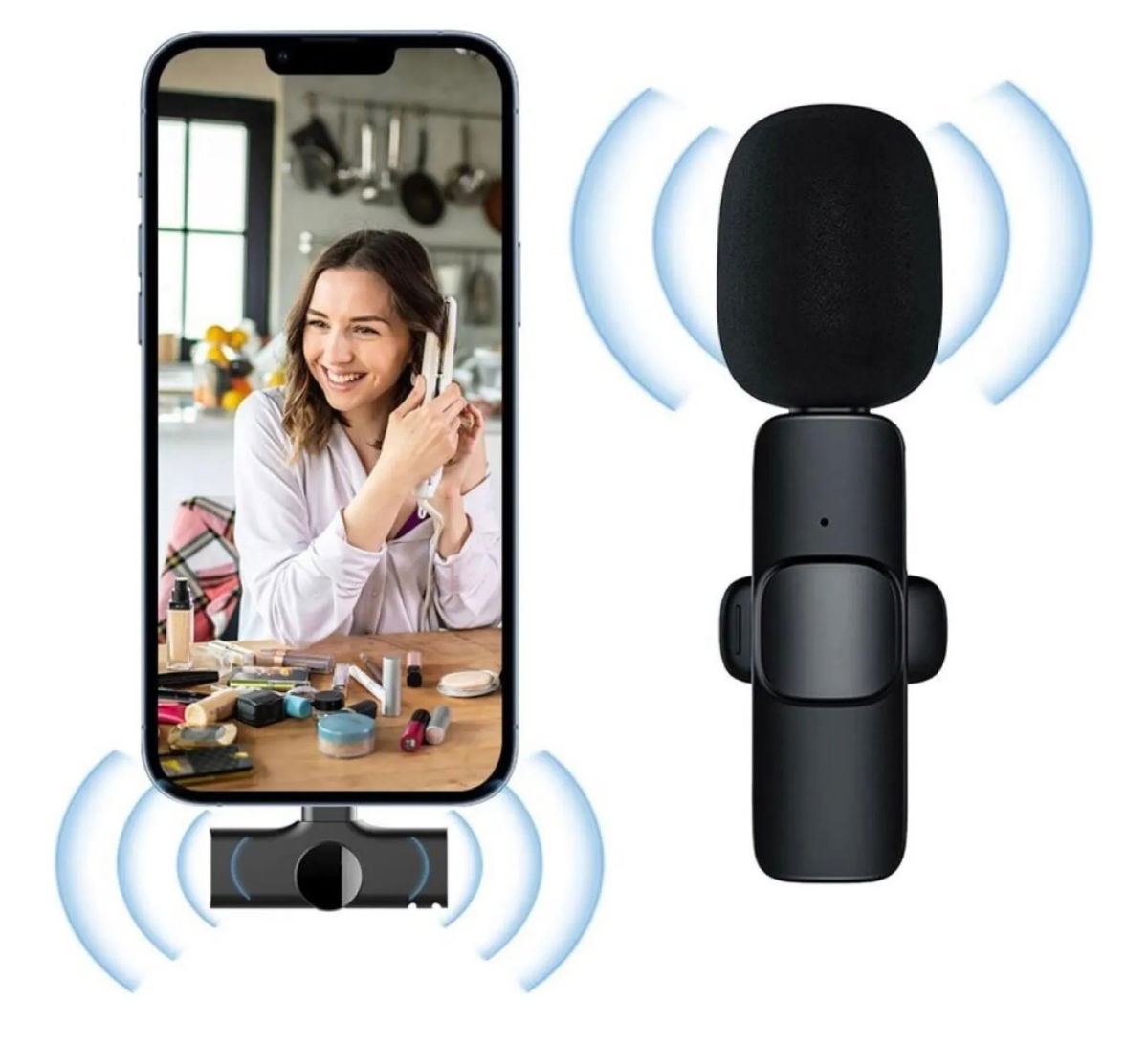 Micrófono corbatero inalámbrico. Para teléfonos o iPads con entrada "Lightning".